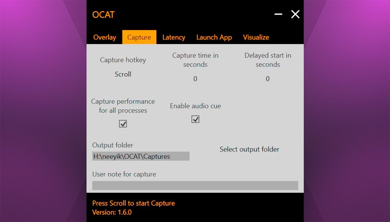 Перед началом работы с OCAT нужно выбрать папку для сохранения данных и задать горячую клавишу, которая будет запускать сбор информации. Важный момент: заданная кнопка не должна быть задействована в самой игре. Также полезно указать промежуток времени, на котором программа будет собирать данные.