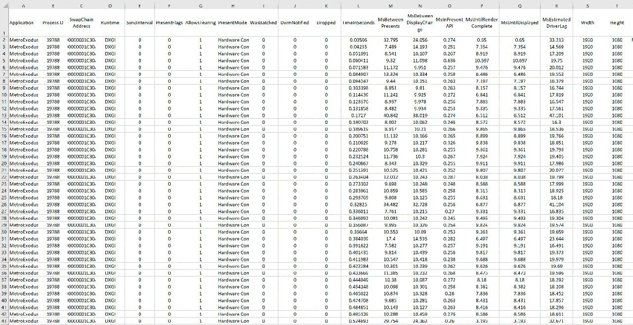 Когда измеряют частоту кадров в различных обзорах, то обычно берут данные из столбца MsBetweenPresents, а потому OCAT автоматически отображает их по умолчанию. Другие программы для фиксации фреймрейта используют этот же показатель.