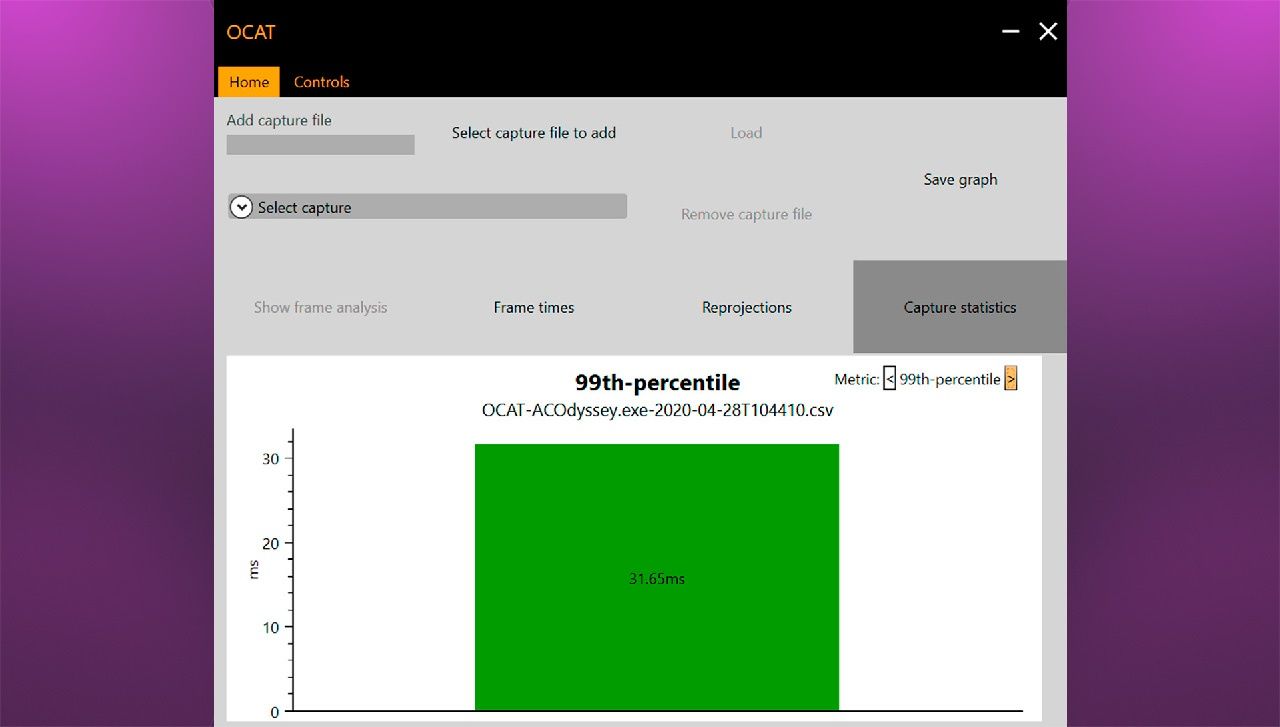 Помимо построения графиков, OCAT умеет в базовый статистический анализ. За кнопкой «Capture statistics» скрываются множество опций, из которых особенно интересуют две: «Average FPS» и «99th-percentile».