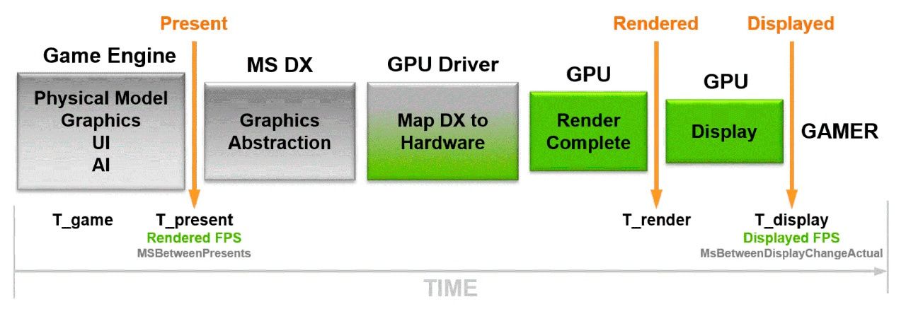 Любая игра или программа, фиксирующая частоту кадров, измеряет временной интервал между проходящими друг за другом инструкциями Present. В этом промежутке происходит несколько вещей:
