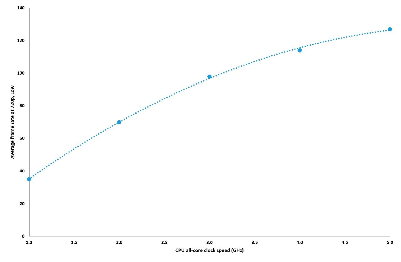 Для того, чтобы увидеть хоть сколько-нибудь значительное изменение fps в зависимости от частоты процессора, пришлось снизить разрешение до 720p и закрутить настройки графики до минимума.