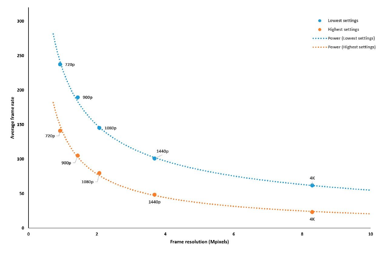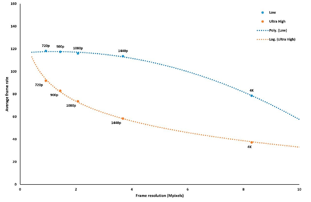 Один из способов проверить это – повторить тесты при различных разрешениях и настройках графики. Изменение разрешения повлияет только на GPU, в то время как настройки графики отразятся на работе и CPU, и GPU. В нашем случае для тестов использовались 5 разрешений, самые низкие и самые высокие настройки детализации.