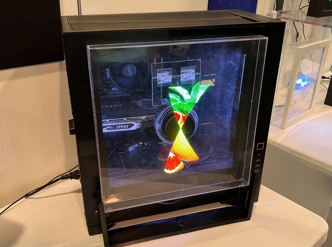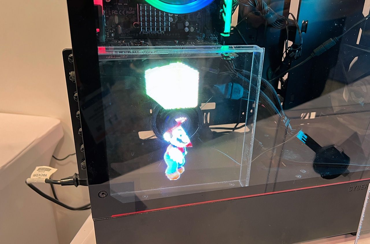 На прошлой CES компания Showcase PC показывала компьютерные корпуса со встроенными голографическими панелями. На этой компания появилась уже под названием Showcase Hologram, отказалась от выпуска таких корпусов, и занялась исключительно голограммами.
