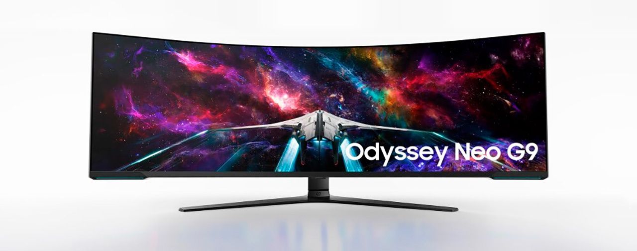 Кратко говоря, Samsung горизонтально соединили пару 27-дюймовых 4К-матриц, и получился 57-дюймовый Odyssey Neo G9. Также интересны его вторичные характеристики: подсветка Quantum Mini LED, есть сертификат VESA Display HDR 1000, частота обновления 240 Гц. А ещё это первый дисплей с поддержкой интерфейса DisplayPort 2.1, который вдвое быстрее актуального DisplayPort 1.4.