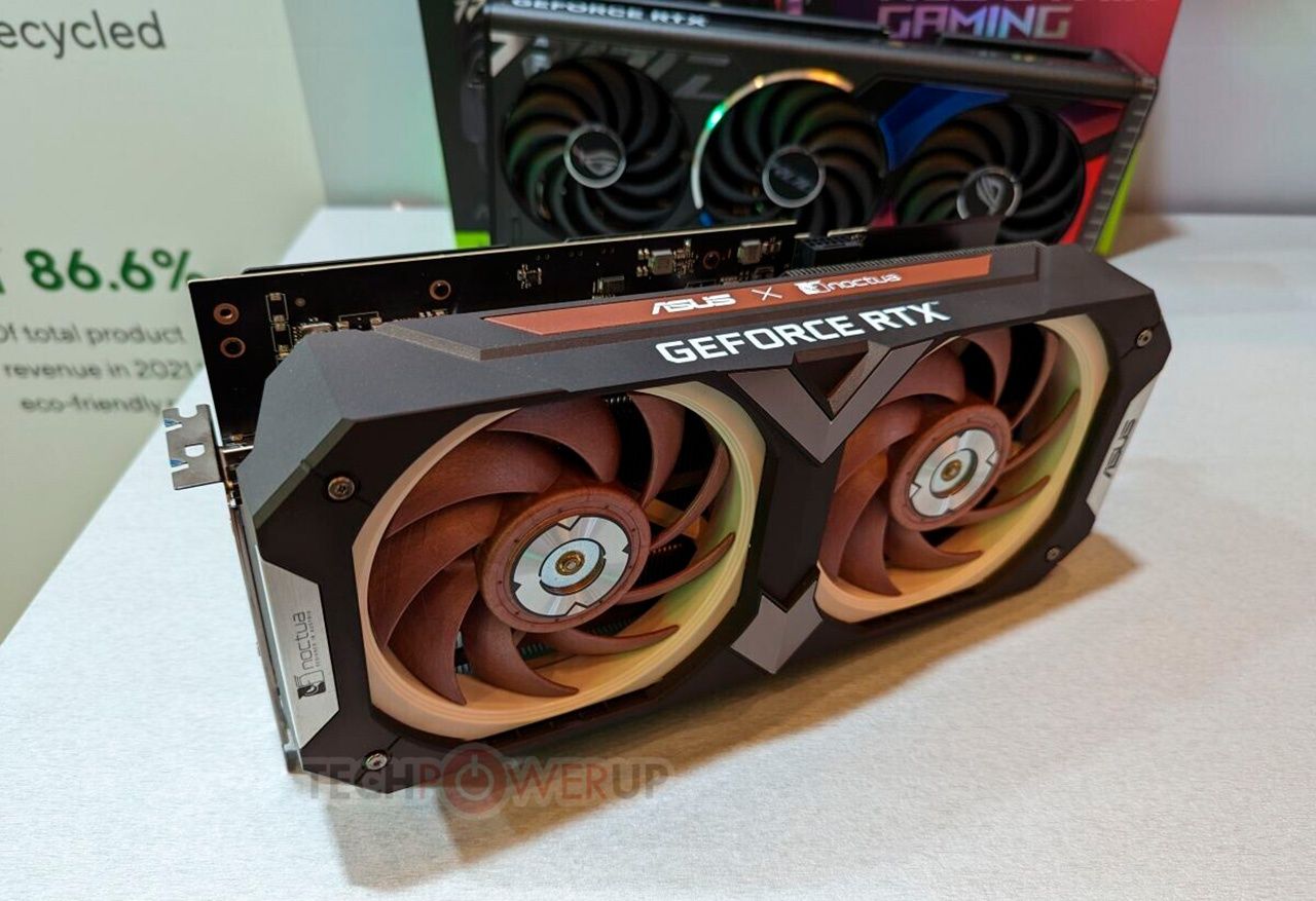 Похоже, прошлогодние модели своих поклонников нашли, и была показана ASUS GeForce RTX 4080 Noctua Edition 16 ГБ GDDR6X (RTX4080-O16G-NOCTUA).
