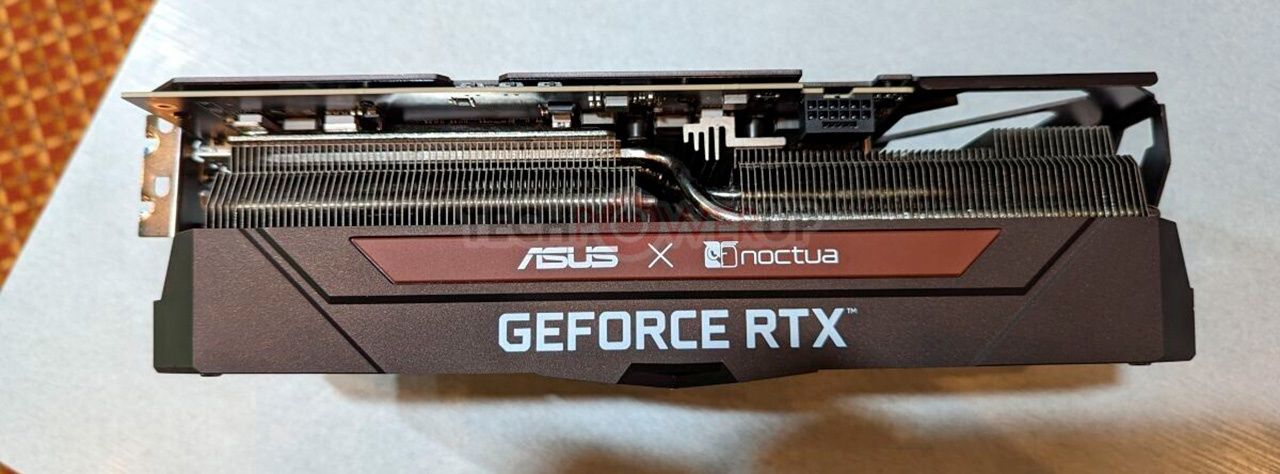 В рамках серии видеокарт GeForce RTX 3000-ой серии ASUS и австрийский кулеростроитель Noctua объединились, и выпустили RTX 3070 и RTX 3080 в исполнении Noctua Edition. Толстенный 4,3-слотовый кулер с полноценными 120х25 мм пропеллерами не оставили конкурентам и шанса в плане уровня шума и температур работы.