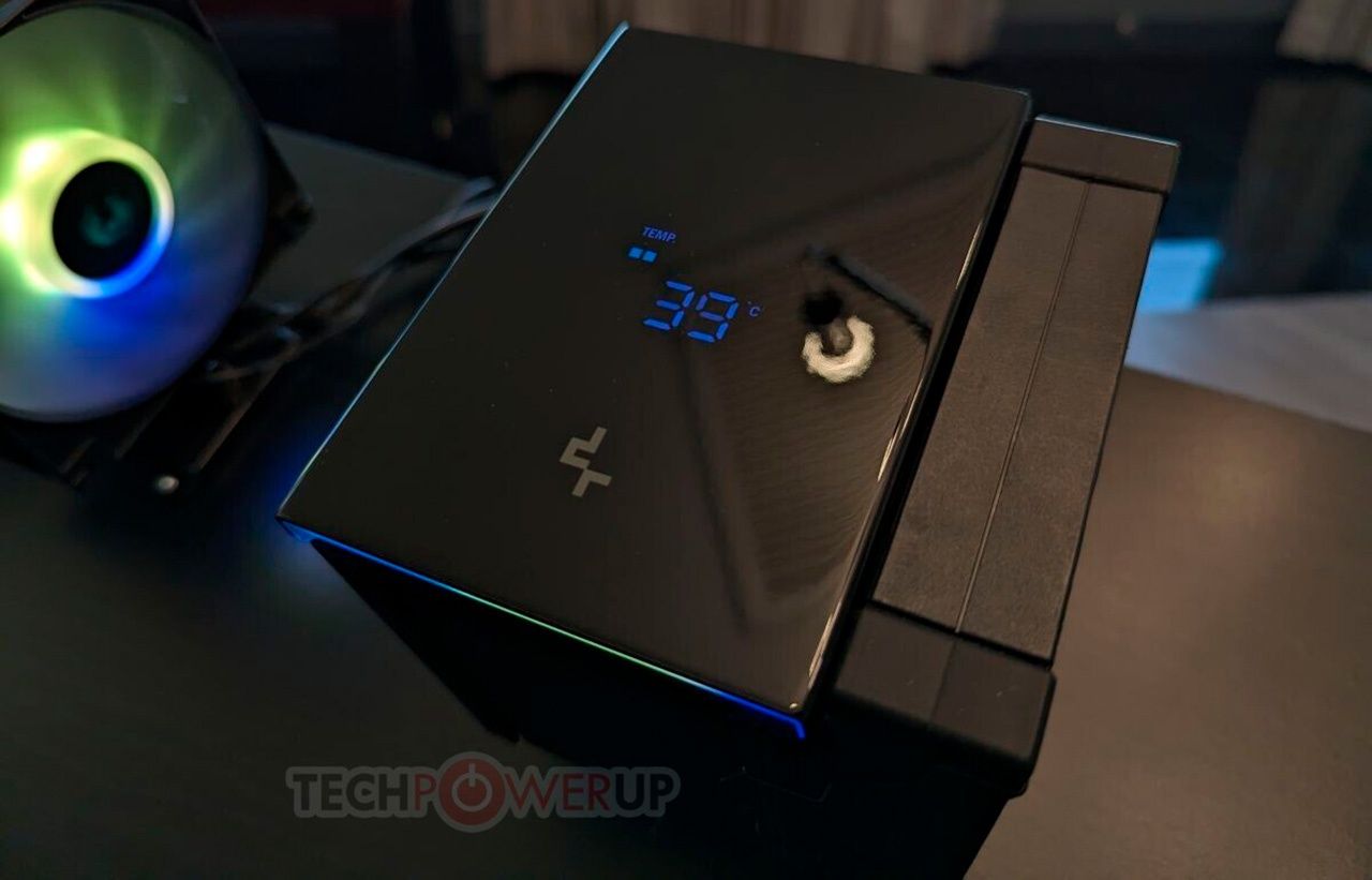Сейчас многие компании предлагают СЖО с мини-дисплеем на водоблоке, на который может выводиться различная информация о компьютере. В большинстве случаев это температура процессора или частота вращения вентиляторов. Компания DeepCool адаптировала эту «фишку» под воздушные системы охлаждения.