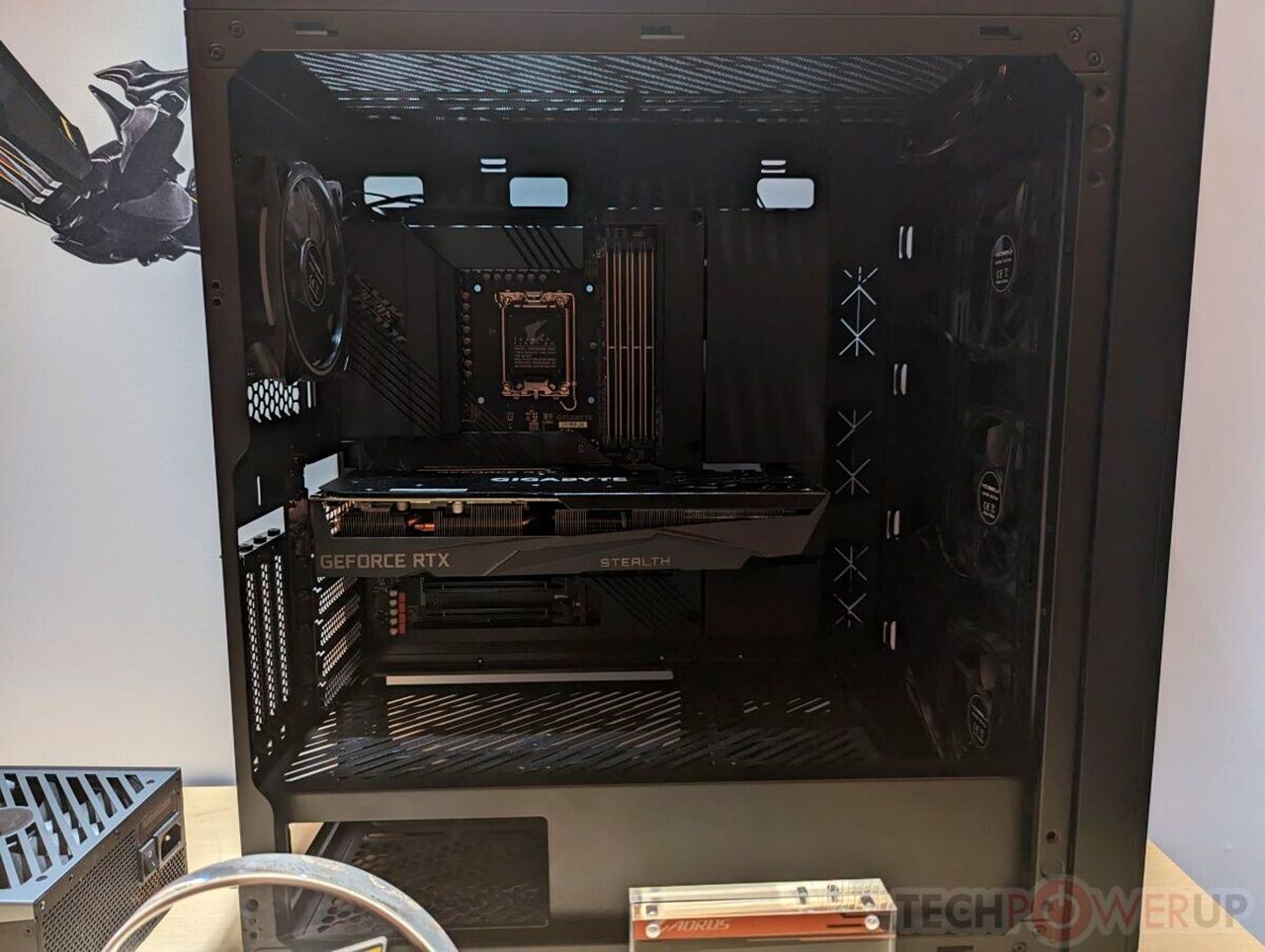 Весь прошлый год в Сети нет-нет, да и да – всплывали фото необычных материнских плат и видеокарт Gigabyte. Компания хотела сделать максимально «чистую» сборку, где абсолютно все кабели скрыты. Для этого пришлось изменить положение всех разъёмов питания видеокарты, платы, создать специальный корпус.