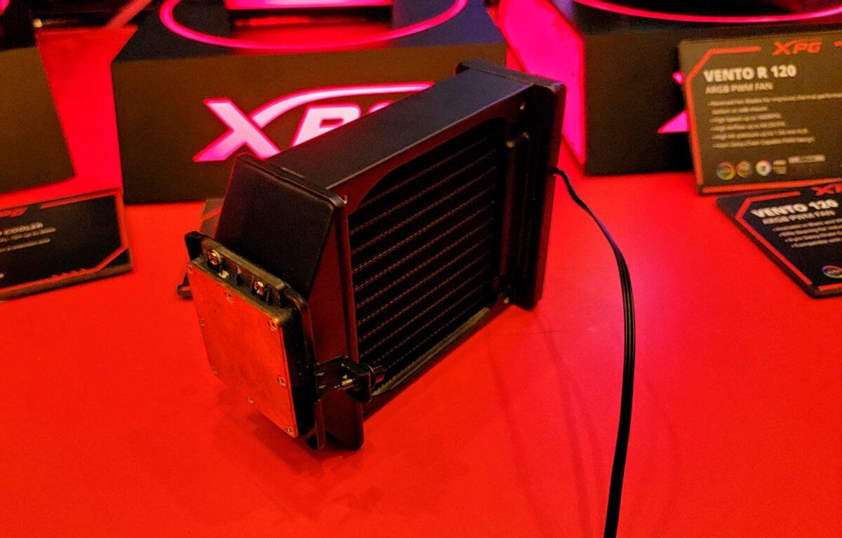 Технически XPG Hybrid Cooler – жидкостная система охлаждения, но радиатор не выносной, а совмещён с основанием. Это СЖО в формате «башни» с парой 120-мм вентиляторов. Заявлено, что кулер может справиться с 280-ваттным процессором.
