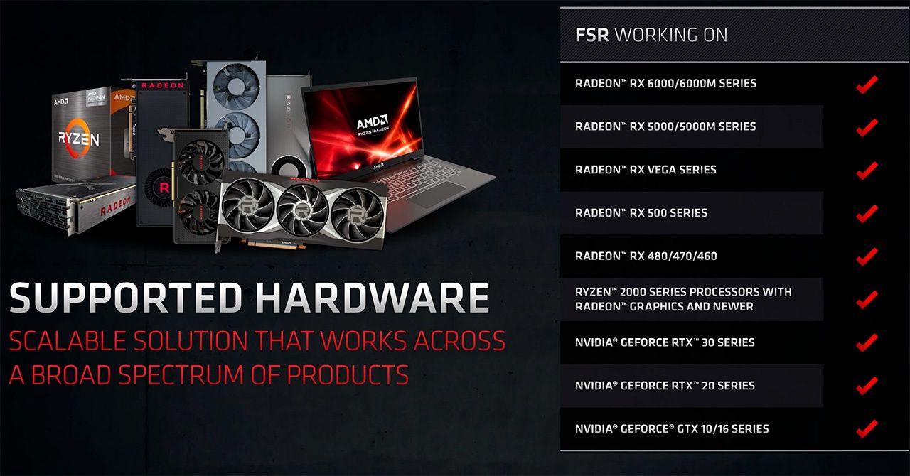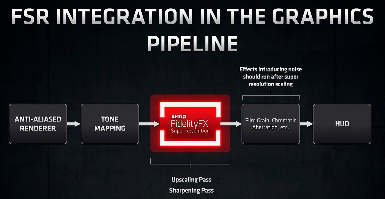 FSR: передаёт изображения, масштабируя его для разных разрешений. Фиксированный алгоритм, который сглаживает кадр и повышает его контраст.