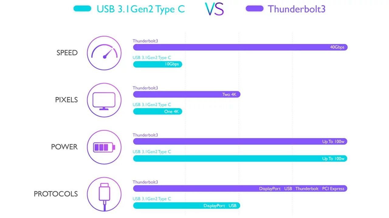 Если очень кратко, Thunderbolt опережал USB на одно поколение, а точнее: