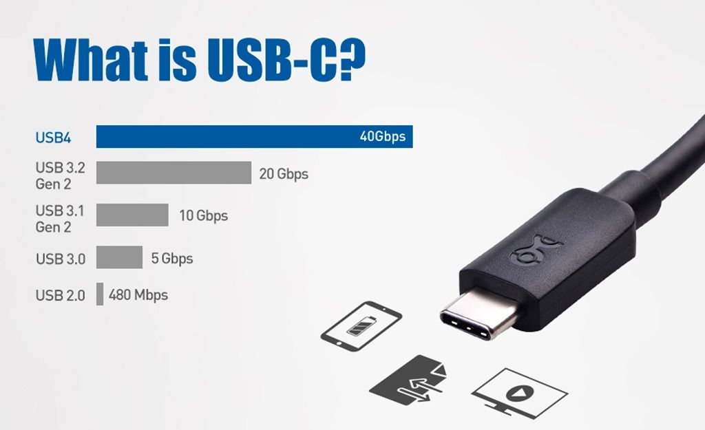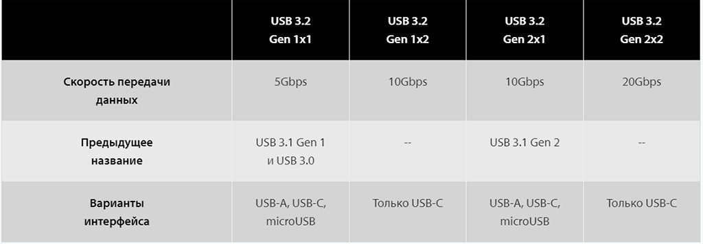 Разъемы USB-A и USB-C могут иметь различные стандарты/спецификации передачи данных, вплоть до USB 3.2, который определяет их общие возможности передачи данных;