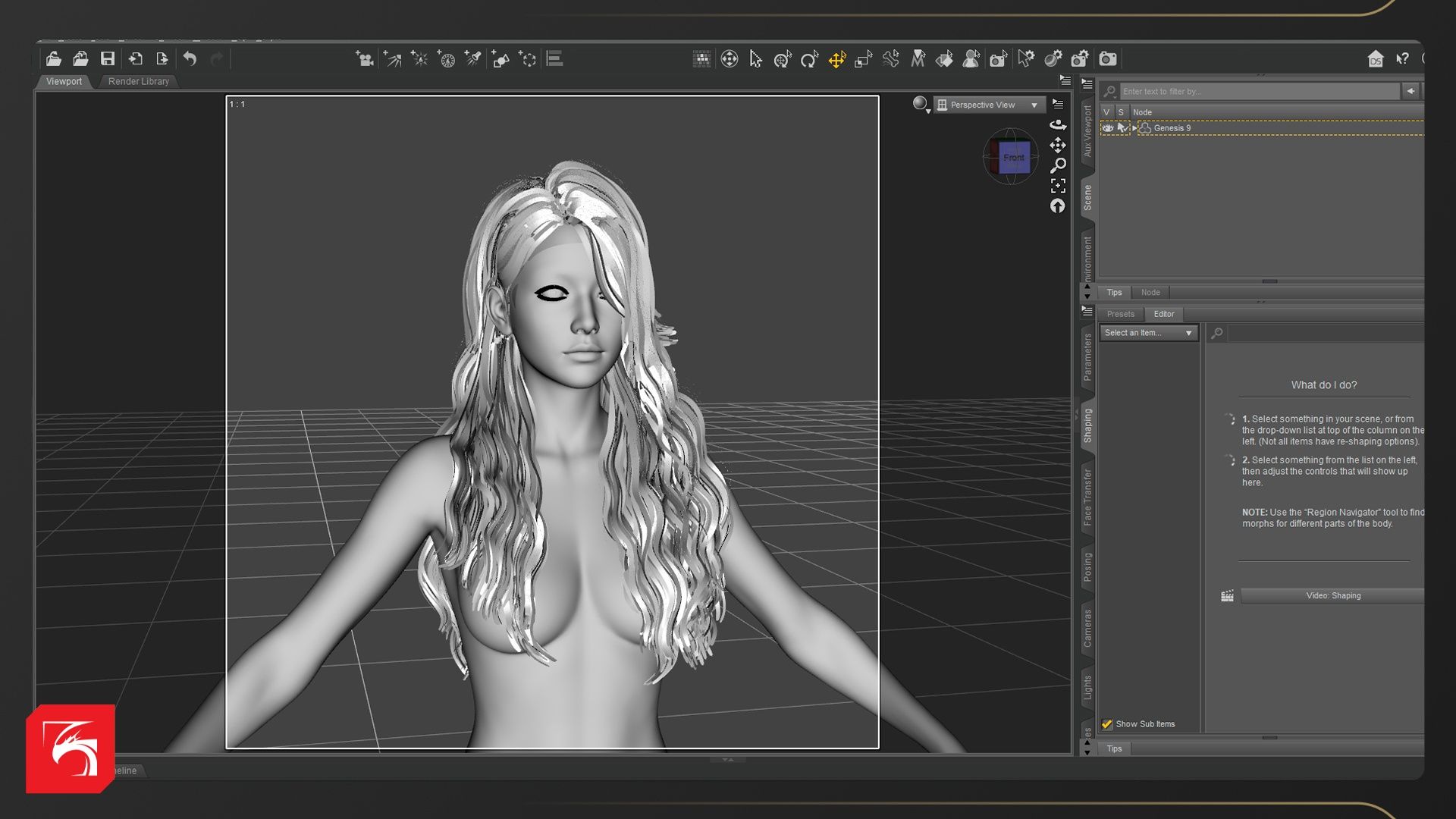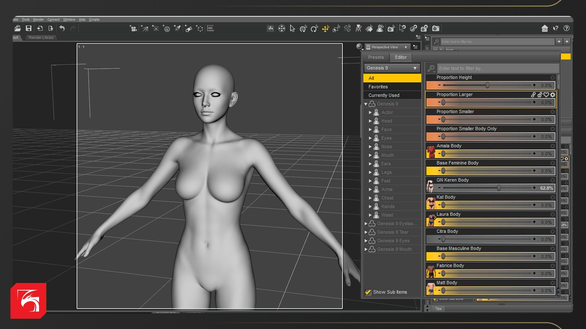 Daz Studio использует в качестве основы для создания персонажей модель Genesis. Она представляет собой базовую «заготовку» персонажа. После чего эта модель настраивается с помощью различных параметров: изменение пропорций тела, черт лица и так далее.