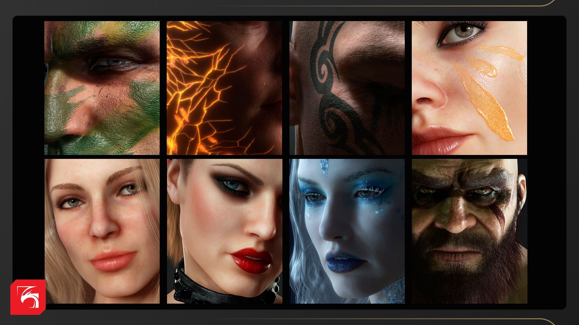 Кроме того, SkinGen предлагает удобную систему слоёв. С её помощью можно легко комбинировать и настраивать макияж, грим и создавать фантастические образы персонажей.