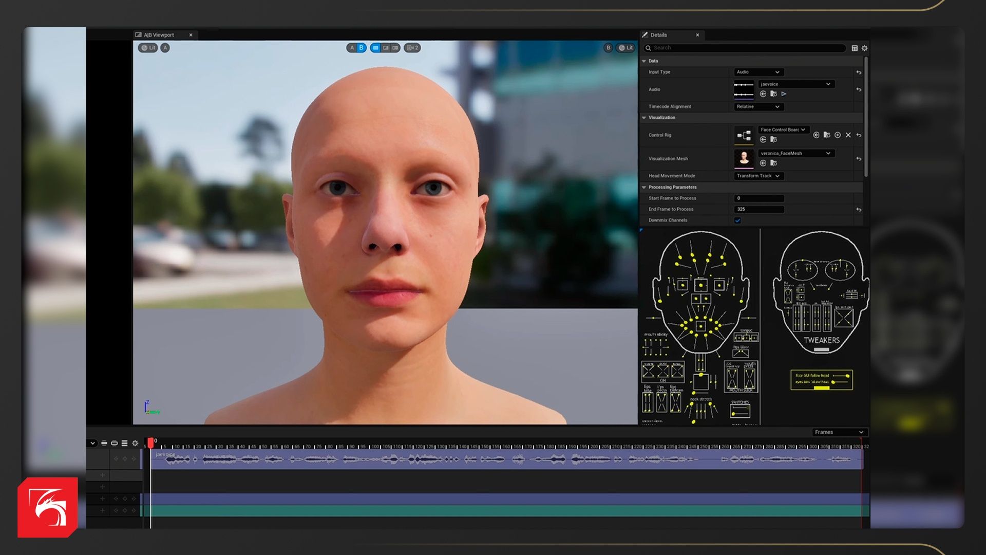 В Unreal импортируется аудиофайл, а на его основе генерируются лицевые анимации персонажа
