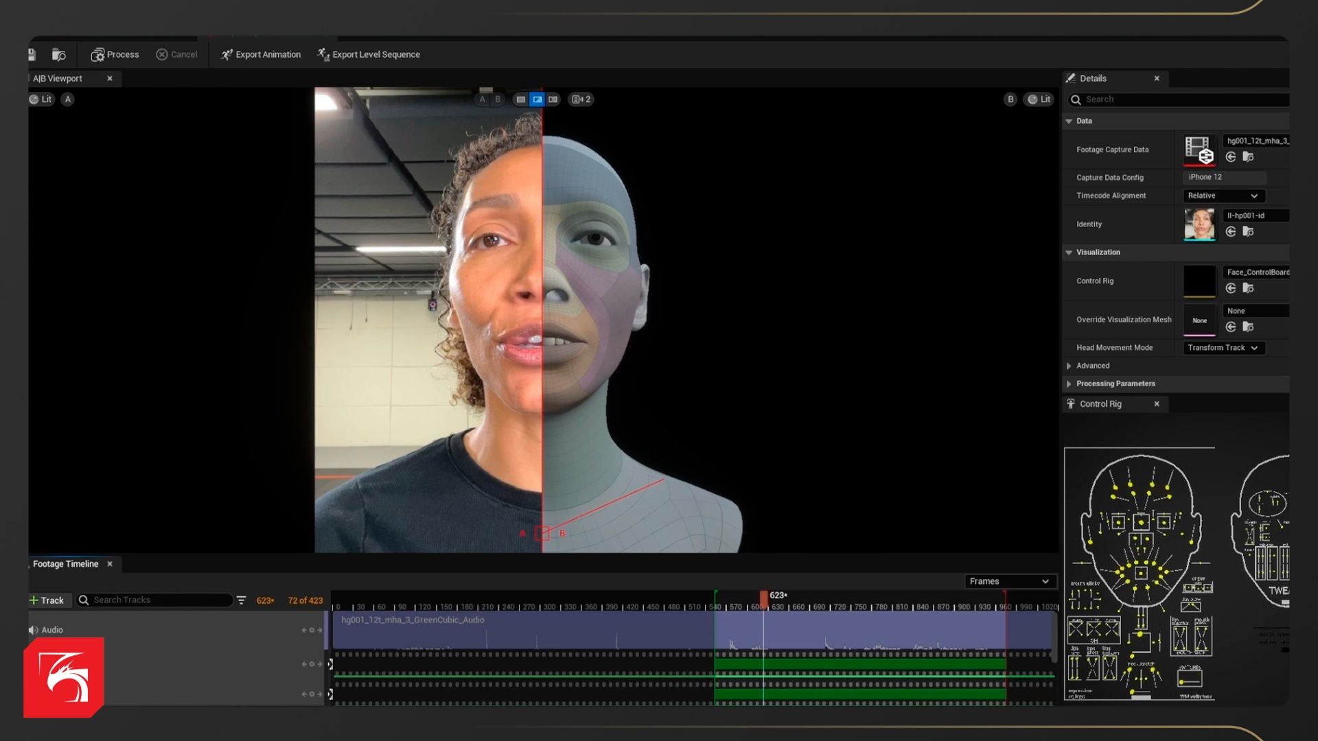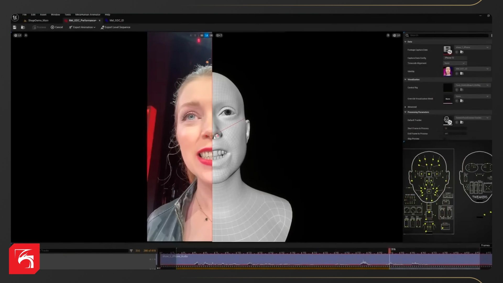 Ещё одна интересная функция — Audio to Facial Animation. Процедурная анимация речи, встроенная в Unreal Engine. Технология отлично работает с Metahuman и позволяет автоматически синхронизировать движения губ и лица 3D-персонажа с аудиофайлом его озвучки.