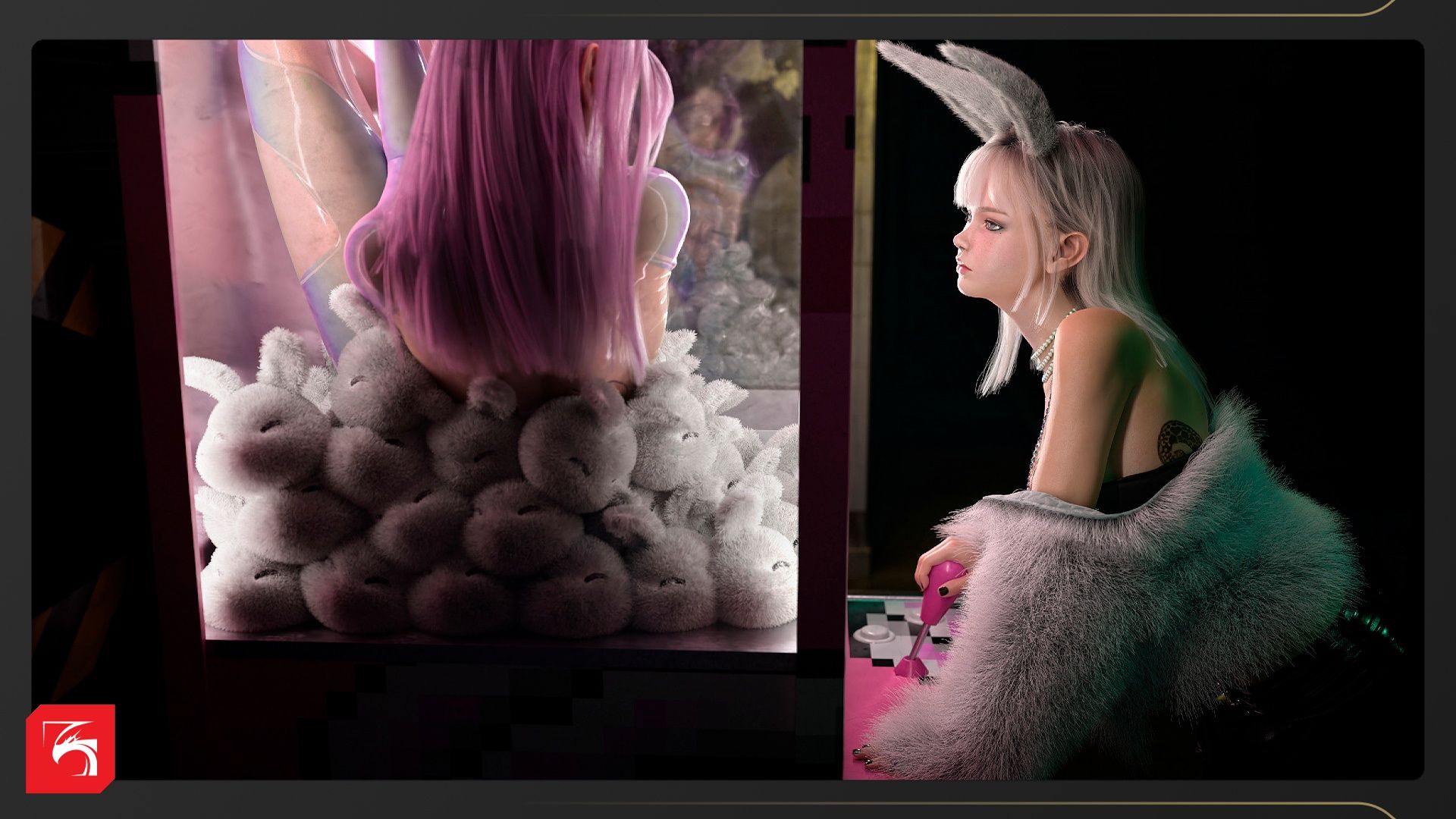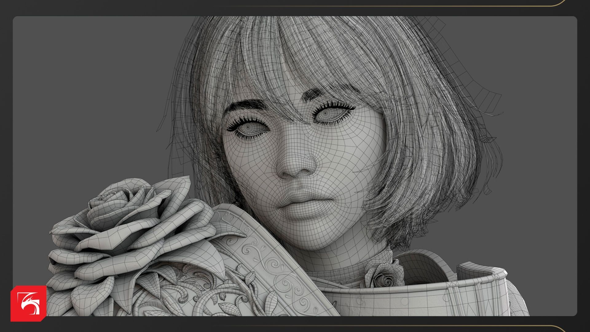 Работа автора Lou LL. Основу для модели взяли в DazStudio, доработали в Zbrush, а затем собрали и отрендерили в Blender
