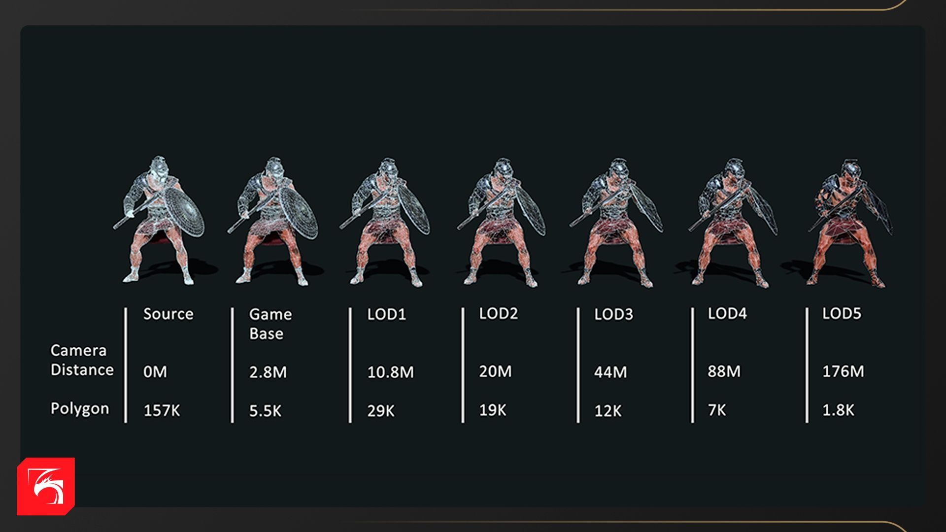 LOD 1, LOD 2 и далее — удалённые объекты: версии модели с меньшим количеством полигонов и упрощёнными текстурами. На больших расстояниях игрок не замечает мелких деталей, поэтому их просто удаляют для повышения производительности.
