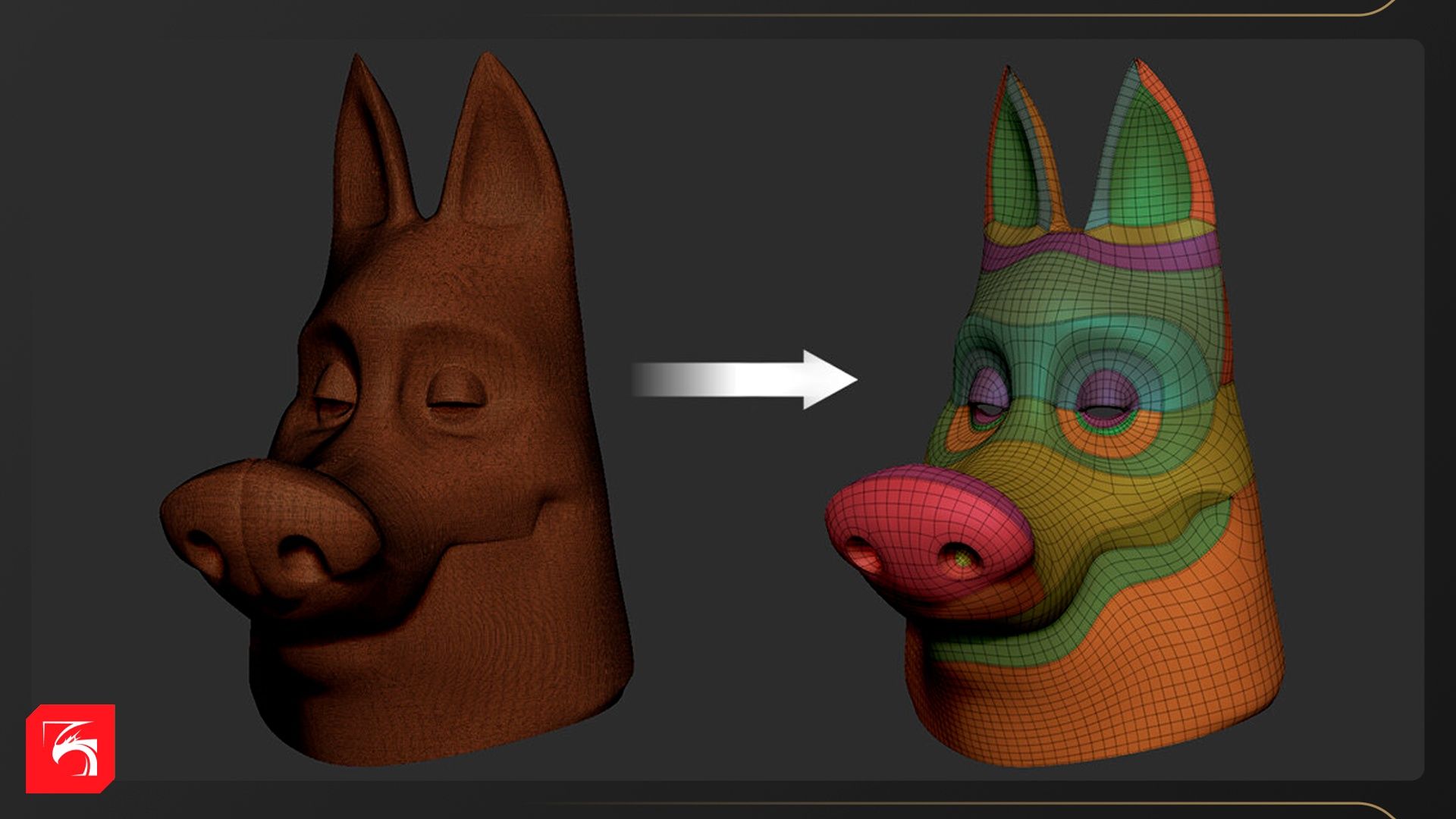 Ретопология — процесс создания новой топологии модели с меньшим количеством полигонов, сохраняя её общий внешний вид и форму.