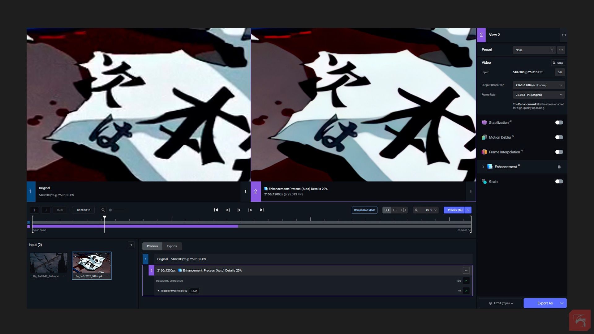 Интерфейс Gigapixel Video AI (на примере показан кадр до и после)