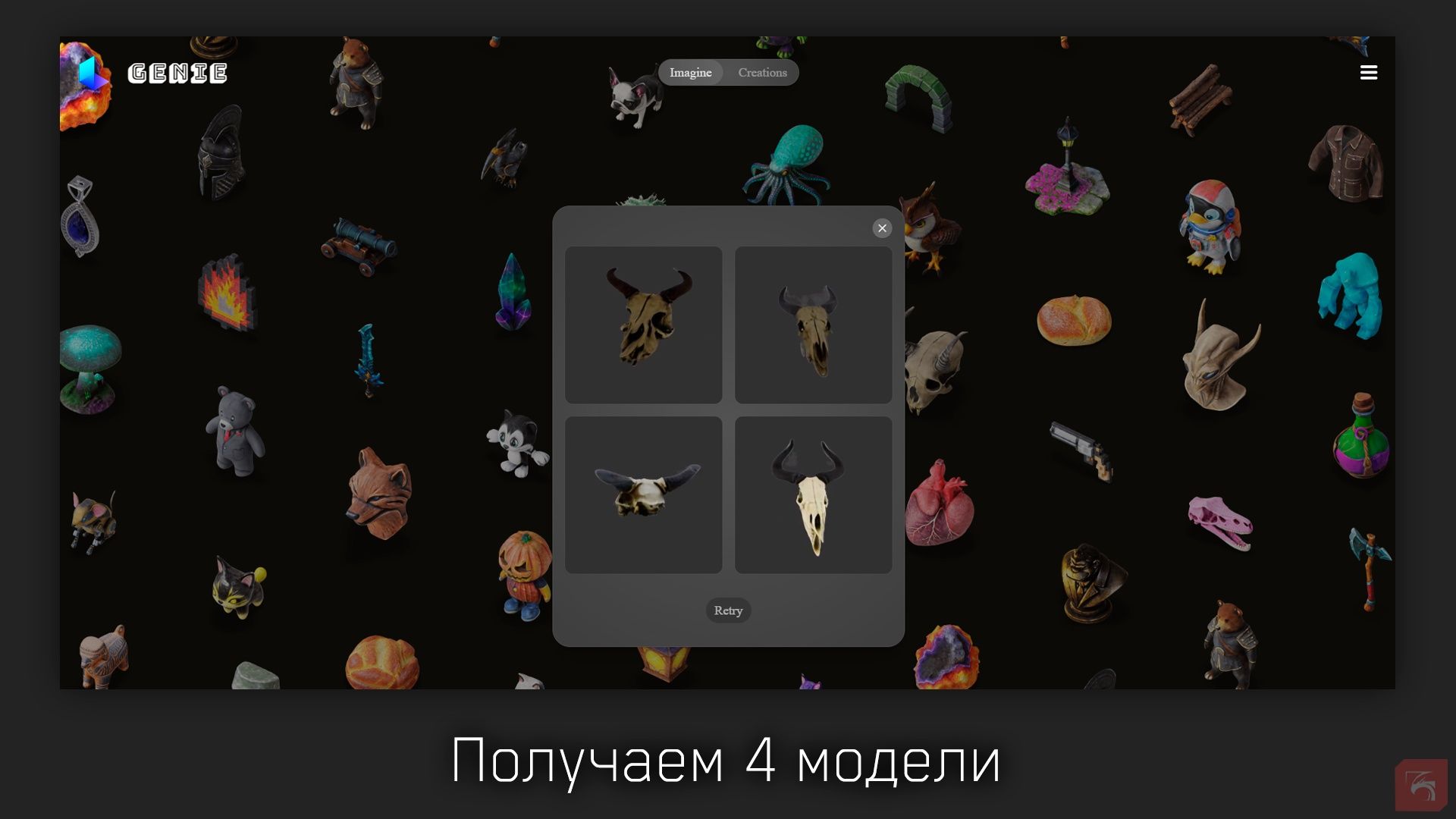 Получаем 4 готовые модели на выбор. Если что-то не устраивает, всегда можно повторить генерацию.