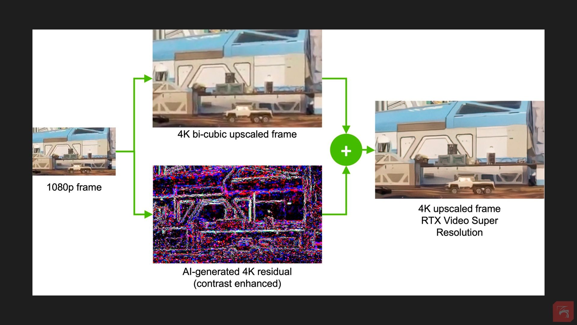 Не путайте RTX Video Super Resolution с DLSS (Deep Learning Super Sampling). Последняя улучшает качество и производительность игр. Это две разные технологии. RTX VSR дорисовывает кадры на основе входного материала низкого разрешения и работает исключительно с видеоконтентом. DLSS же для генерации кадров использует данные игрового движка и не предназначена для работы с видео.