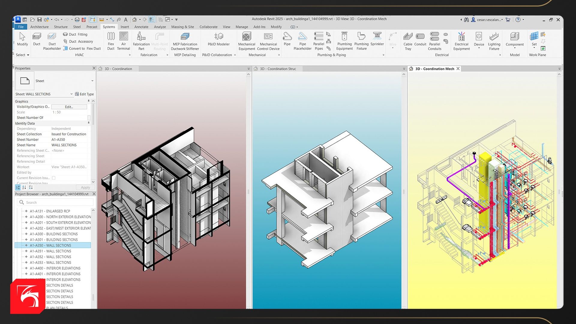 Представьте, что проектируете офисное здание. В Revit вы создаёте 3D-модель, указываете материалы стен, перекрытий, окон. После этого инженер может добавить системы отопления и вентиляции прямо в эту модель. Все изменения синхронизируются, и вам не нужно вручную обновлять чертежи или что-то подгонять.