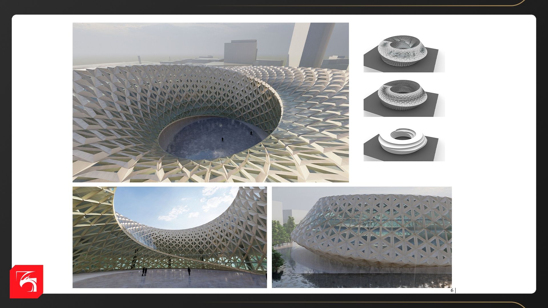 Проектирование современного здания с волнообразным фасадом выглядит так. В Rhino с помощью NURBS-кривых задаётся общая форма строения. Затем в Grasshopper задаются параметры, по которому фасад будет покрыт повторяющимися элементами, каждый из которых автоматически подстраивается под кривизну. В конце проектирования модель экспортируется обратно в Revit для проработки деталей или в визуализатор для создания качественного рендера.