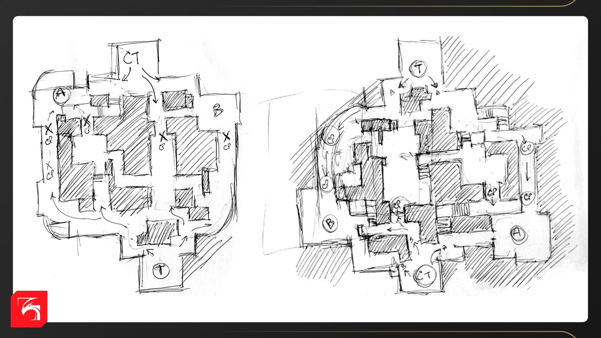 Первый этап разработки любого уровня начинается с простых эскизов и зарисовок общих идей. Это помогает визуализировать и представить себе будущий уровень: каким будет путь игрока, где разместить основные объекты и как это всё будет между собой взаимодействовать. Простые наброски важны, потому что их легко обсуждать и корректировать на ходу.