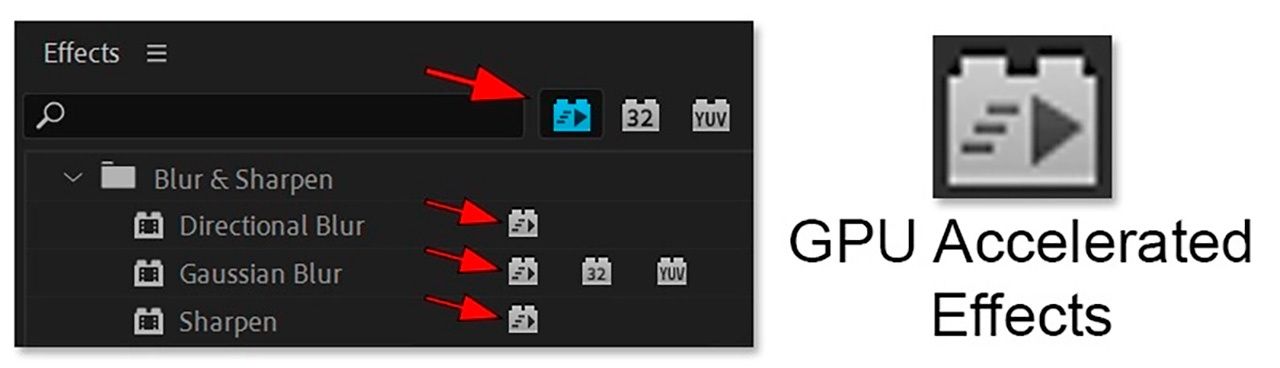 Здесь всё также сильно зависит от конкретного видео. В обычном клипе без эффектов видеокарта практически не используется. Однако если вы используете эффекты с GPU-ускорением, то видеокарта крайне важна. Такие эффекты отмечены соответствующим значком, а их перечень здесь.