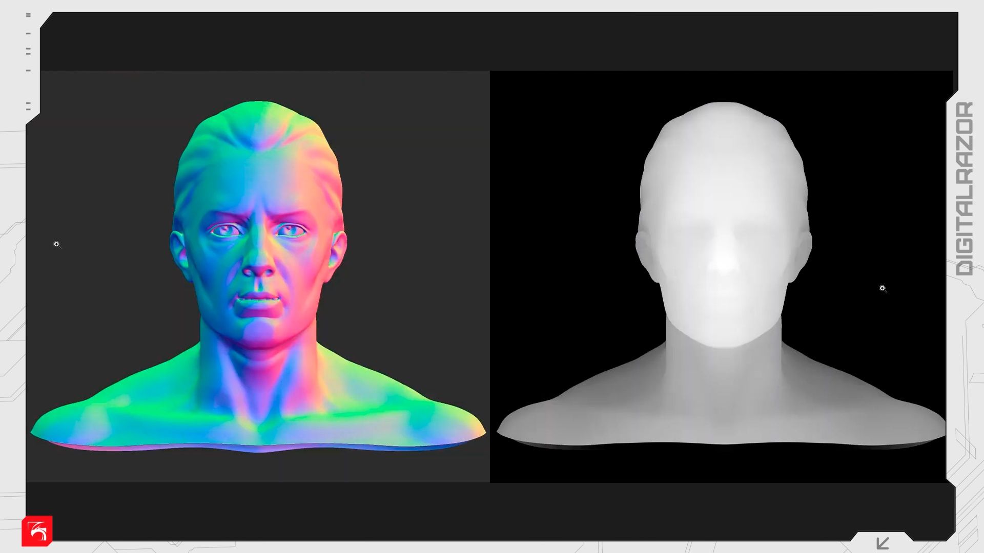 Curvature Map — хранит информацию о вогнутости и выпуклости сетки в градациях серого. Она используется в качестве маски для упрощения покраски текстур: