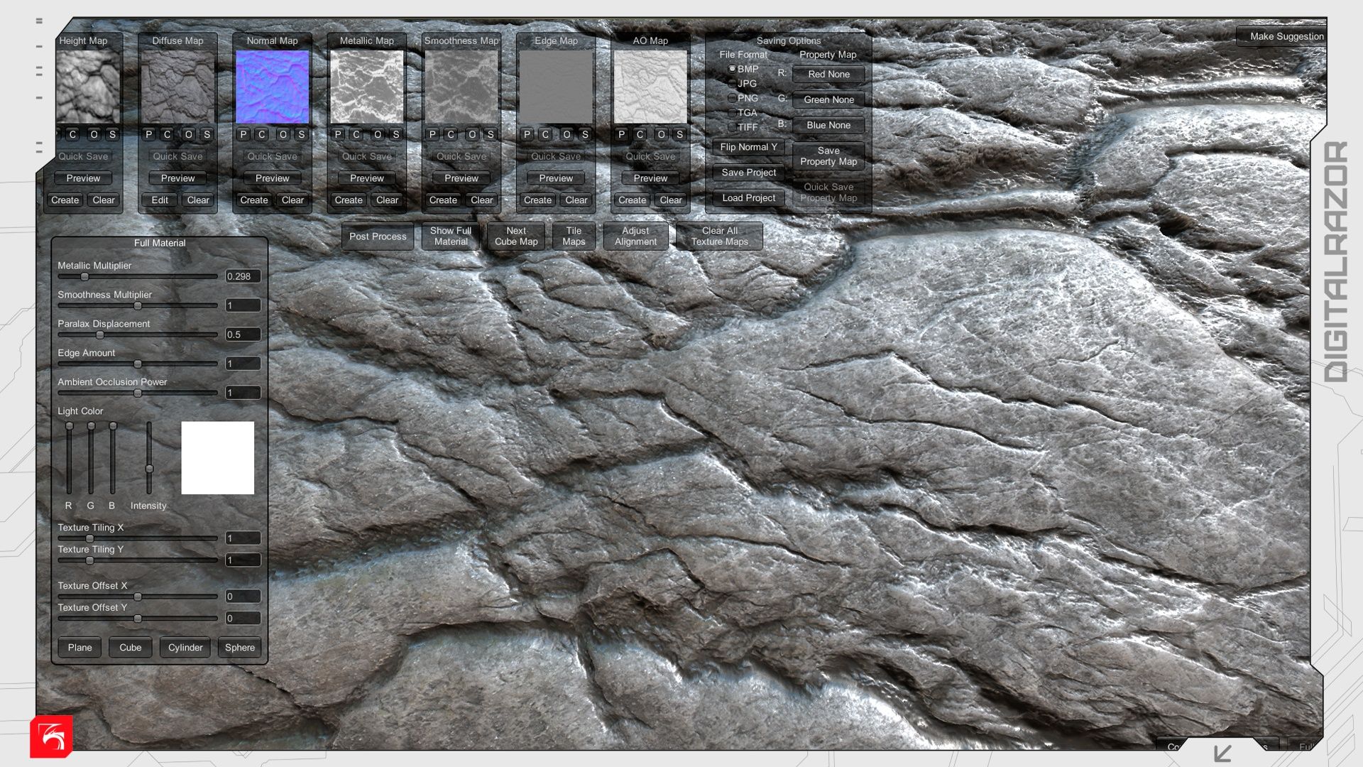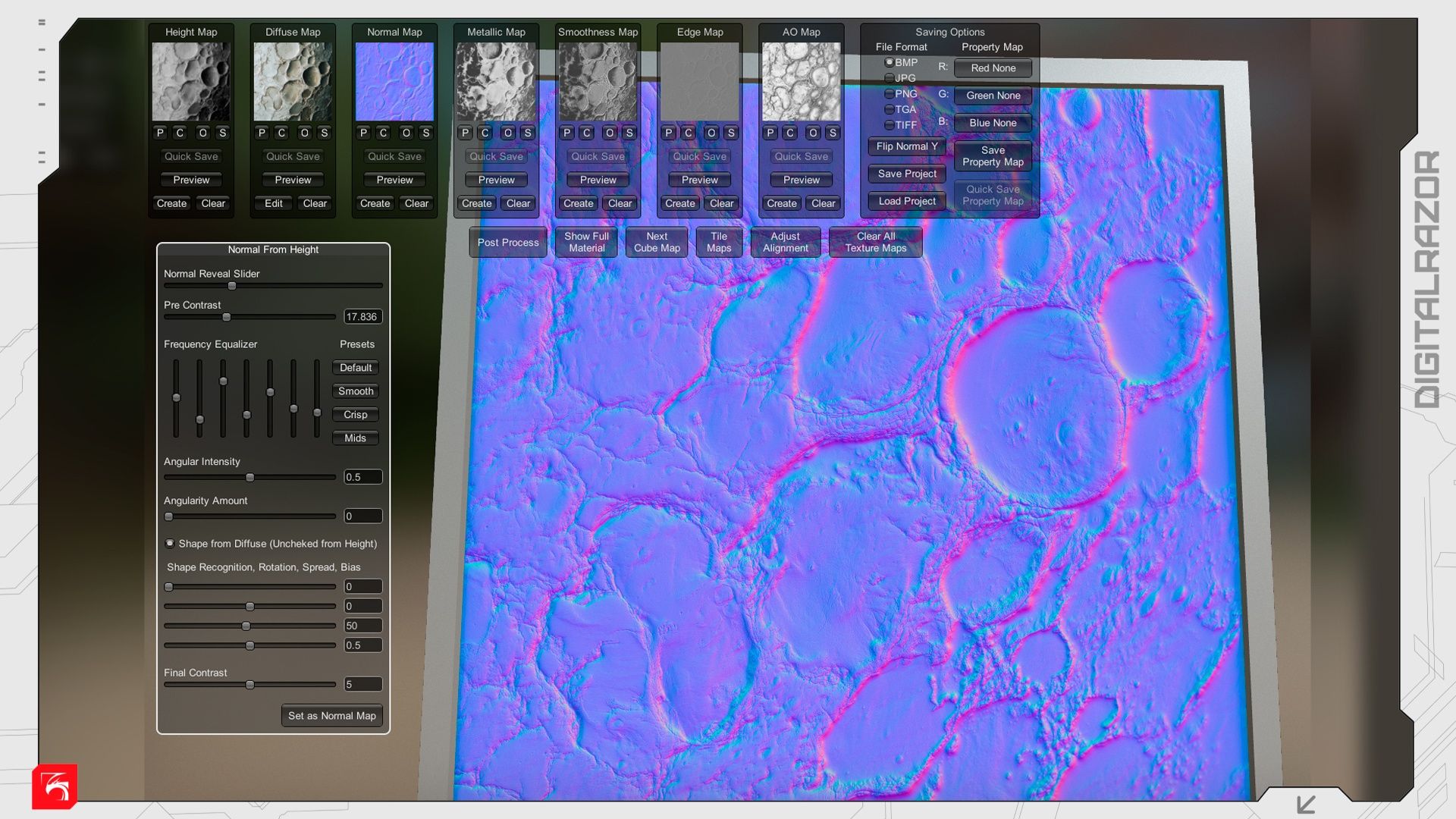 Инструмент для создания материалов на основе изображения. Он также позволяет импортировать имеющиеся текстуры и генерировать необходимые карты (альбедо, нормали, карты высот и т. д.). Materialize особенно полезен для создания бесшовных текстур, что делает его идеальным инструментом для работы с большими поверхностями в играх.