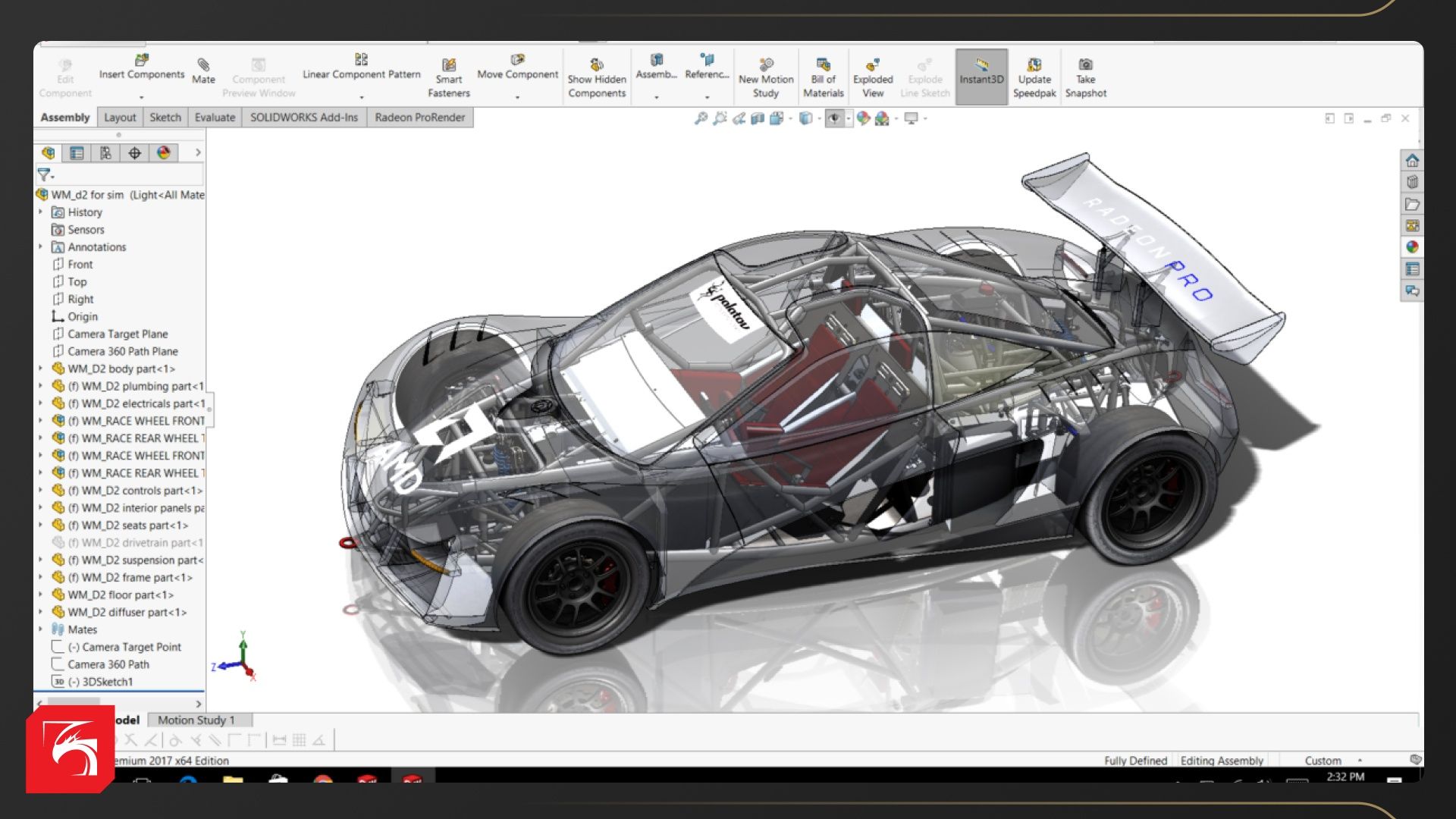 Следующий продукт — SolidWorks от компании Dassault Systèmes. Программа отличается развитой CAD-частью, особенно в плане построения 3D-моделей. А также приятным и интуитивно понятным интерфейсом. ПО выпущено в 90-х, так что с оптимизацией проблем нет — большинство багов давно исправлены.