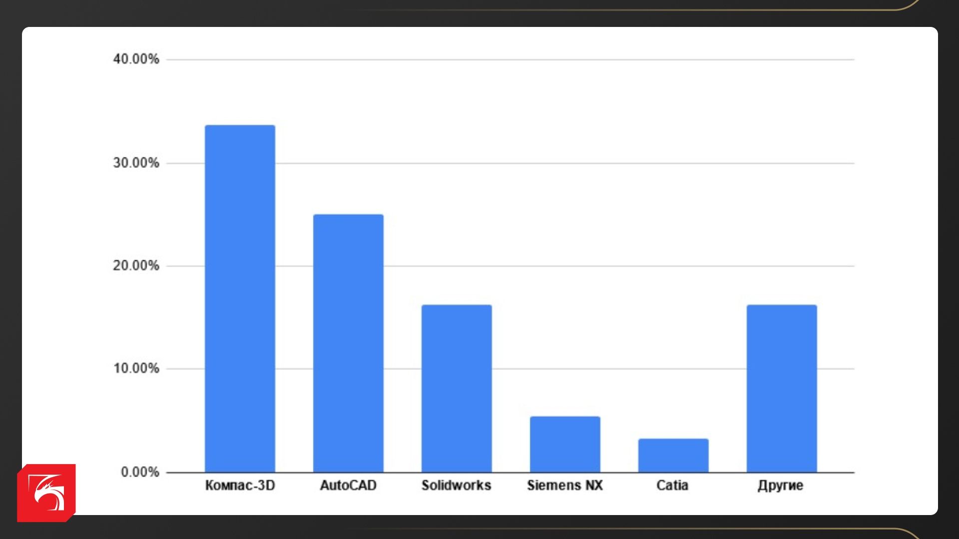 На российском рынке явным лидером в является КОМПАС-3D. Это неудивительно. Возможно, этот софт не самый лучший, не самый мощный и не самый удобный, но он есть и уже никуда не исчезнет. Именно так считают в большинстве российских компаний. И пока ситуация не изменится, КОМПАС-3D будет становиться всё более популярным. Есть в этом несомненный плюс: всплеск интереса к отечественному софту уже подтолкнул разработчиков к тому, чтобы улучшить его и дополнить новыми функциями.