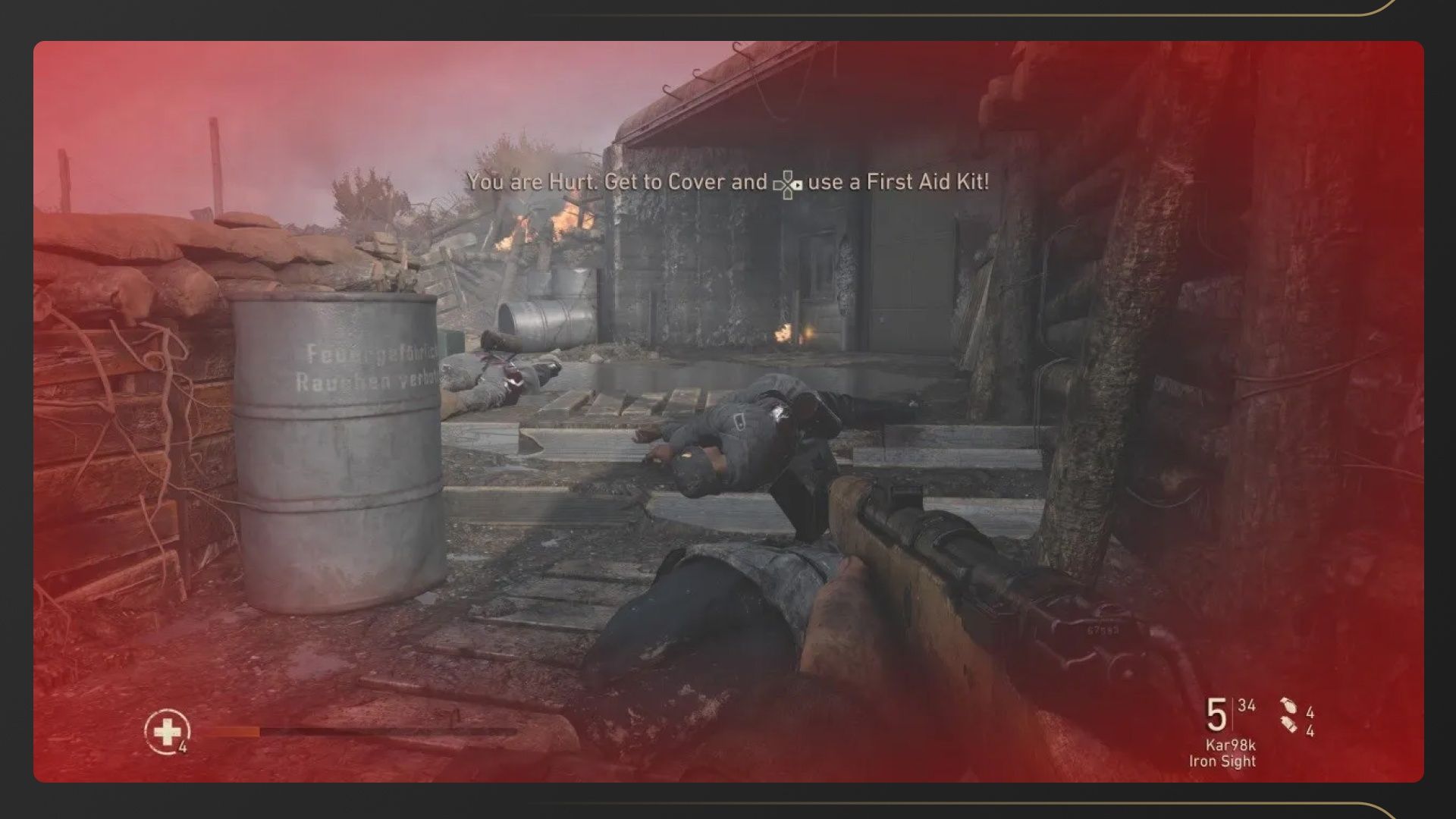 Call of Duty: WWII (2017), экран краснеет — значит смерть не за горами