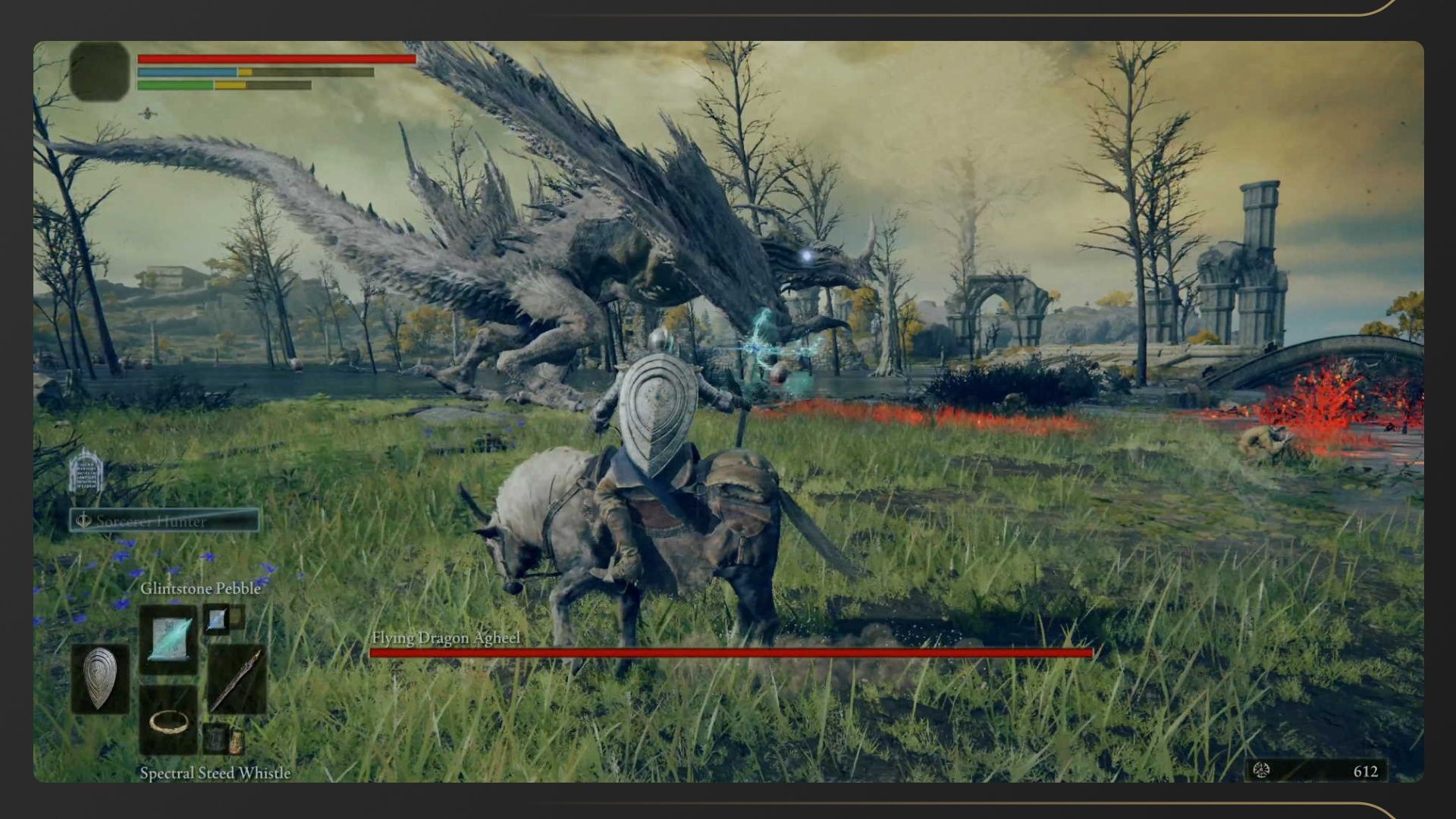 Elden Ring (2022), минималистичный, но информативный интерфейс, который не отвлекает