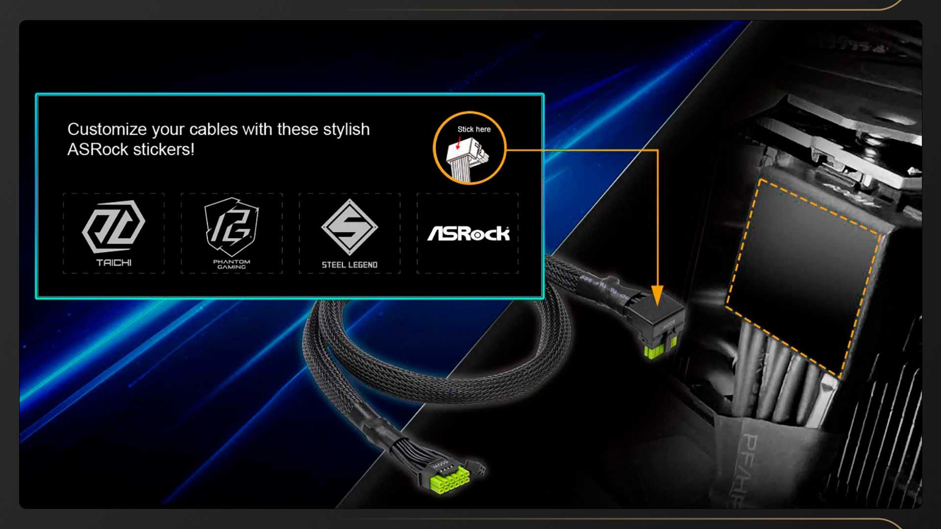 - Предусмотрена площадка для… наклейки стикеров. Да, такая вот киллер-фича, ASRock это подчёркивает отдельно, и даже слайд подготовила;