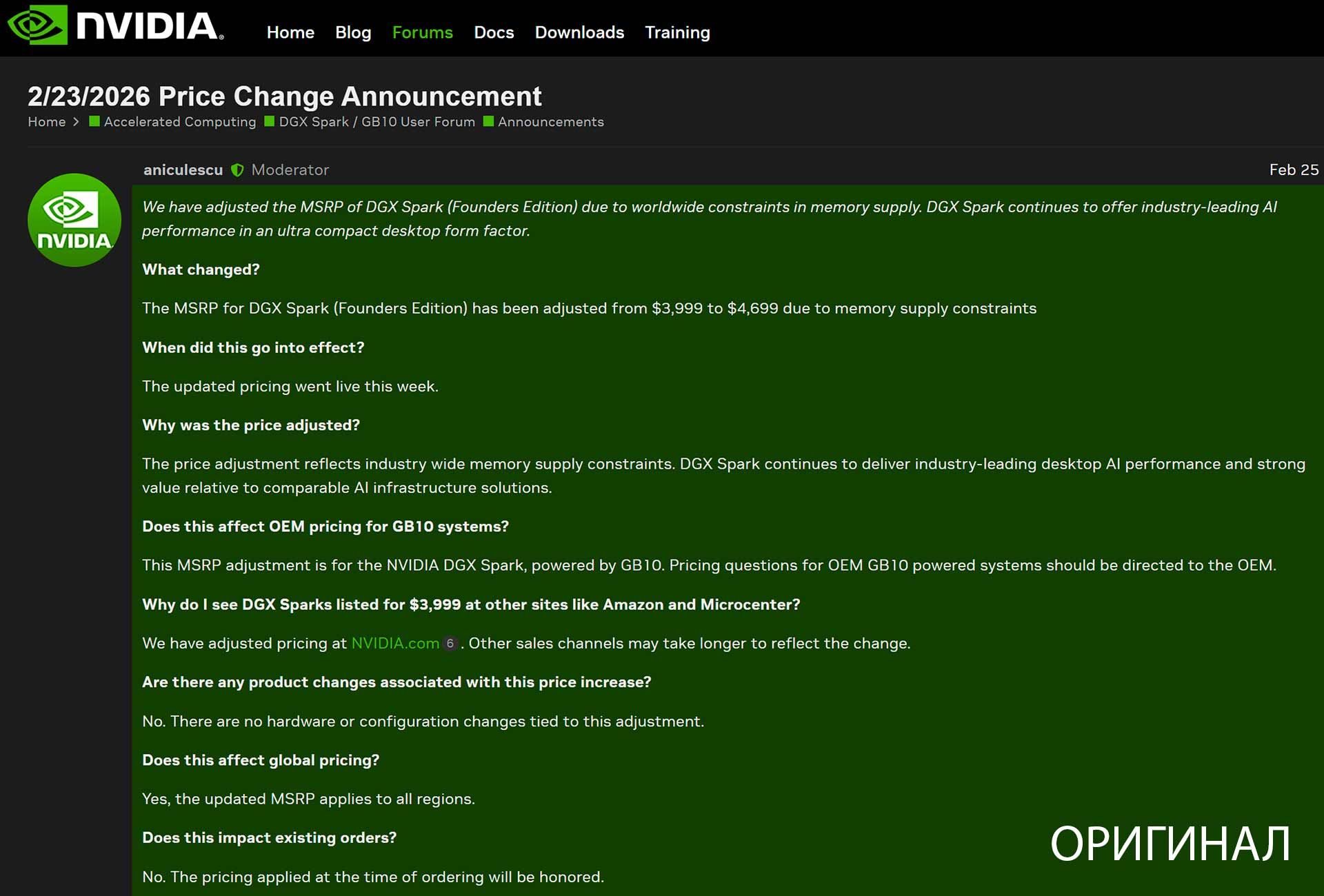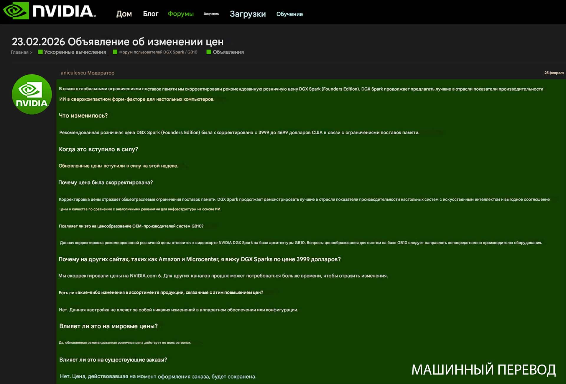- Корпорация NVIDIA повысила стоимость станции DGX Spark до 4700 долларов;