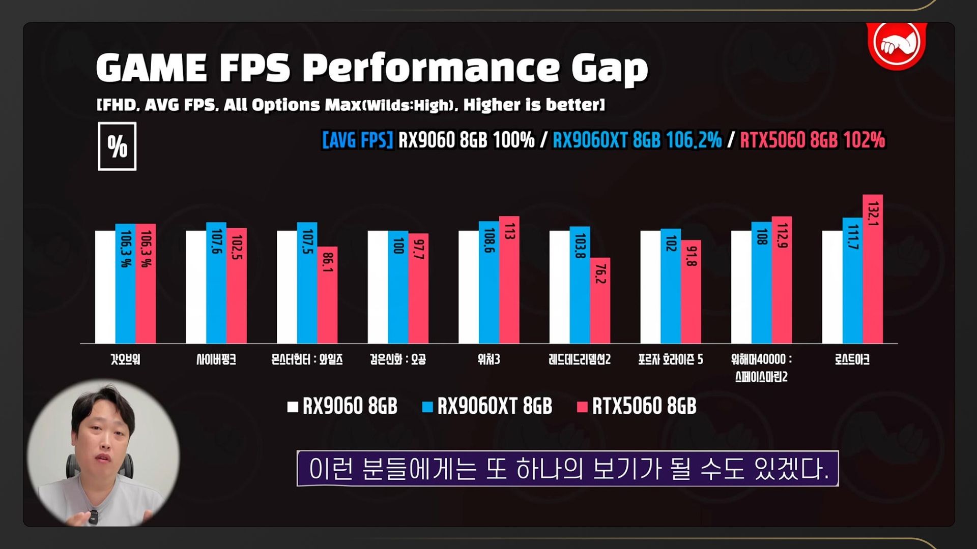 - Относительно RTX 5060 — отставание на 2% (по сути, на грани погрешности измерений);