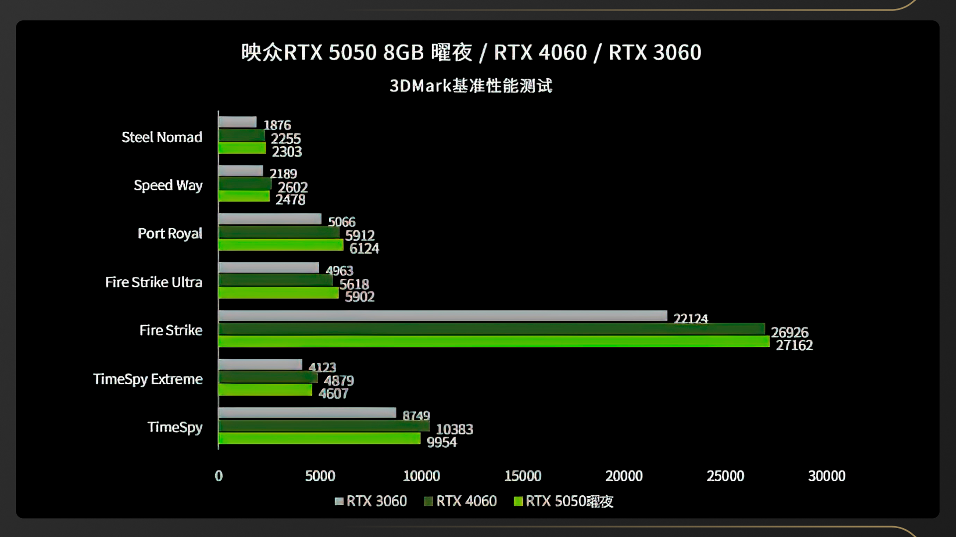 - Судя по ним, RTX 5050 чуть-чуть отстаёт от RTX 4060.
