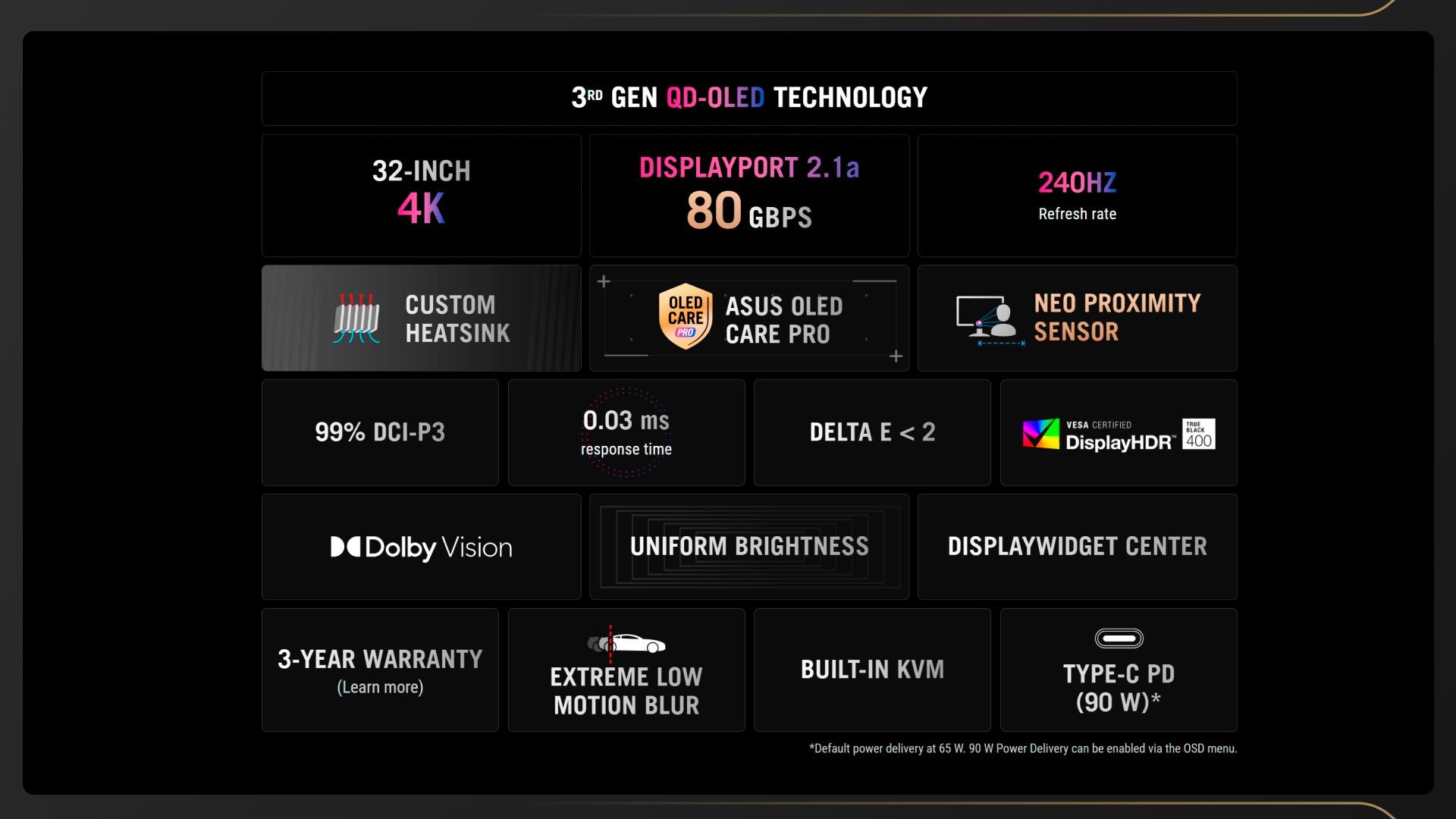 - 32 дюйма, OLED-матрица третьего поколения (суда по ряду признаков, матрица Samsung);