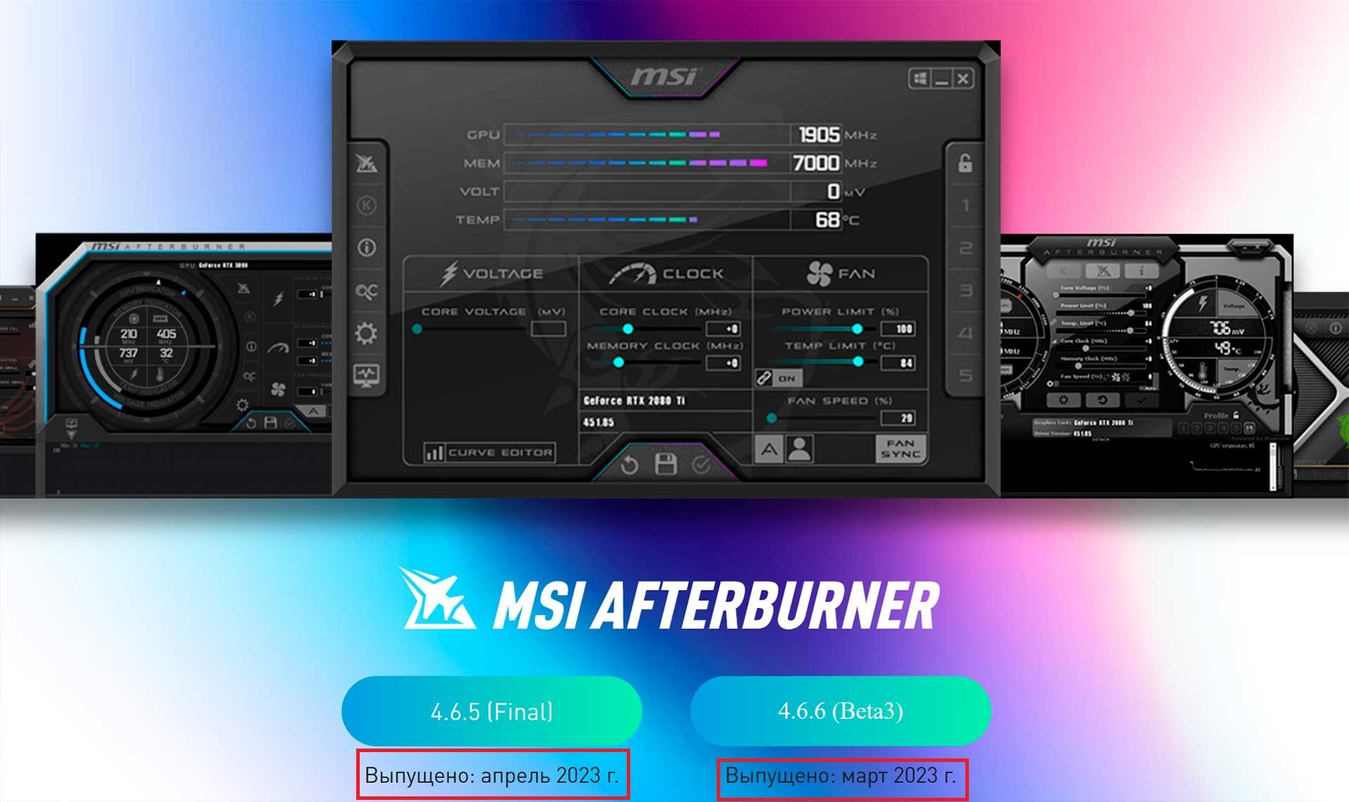 На официальной странице MSI Afterburner для загрузки доступны только очень старые версии, датированные мартом-апрелем 2023 года. Видеокарты GeForce RTX 5000 и Radeon RX 9000 они поддерживают частично. Использовать только на свой страх и риск — разработчик ничего не обещает.