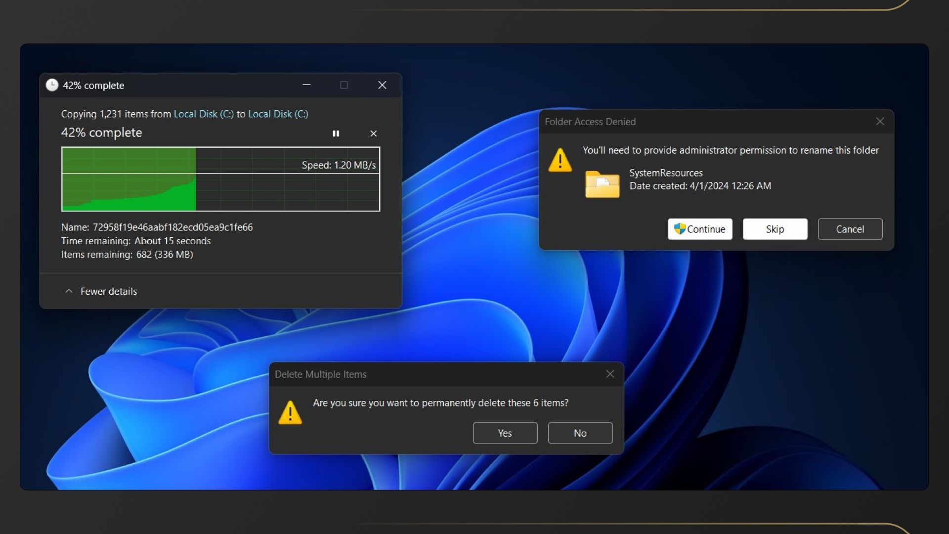 Так выглядят диалоговые окна в тёмном режиме в сборке 26100.5061. Над кнопками ещё нужно поработать