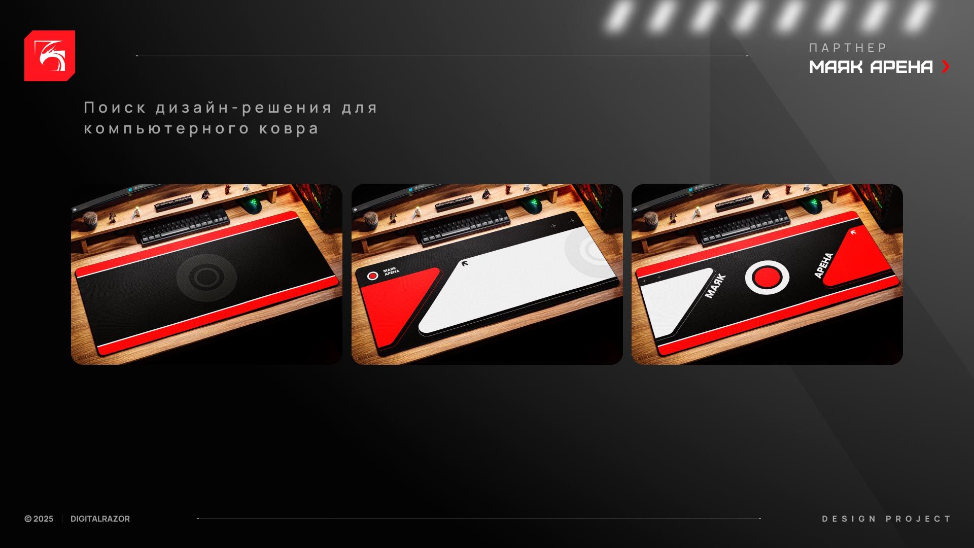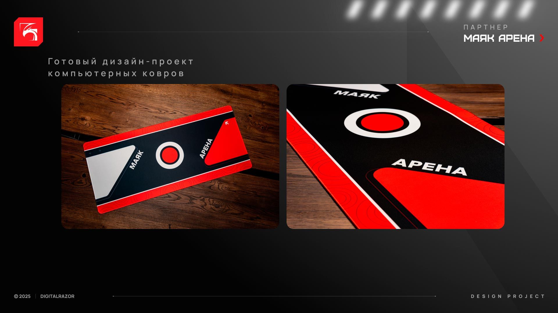 На основе брендбука клиента разработали фирменный стиль для компьютеров, игровых кресел и ковриков для мышек. Визуальное оформление создаёт уникальную атмосферу и выделяет клуб на фоне других заведений.